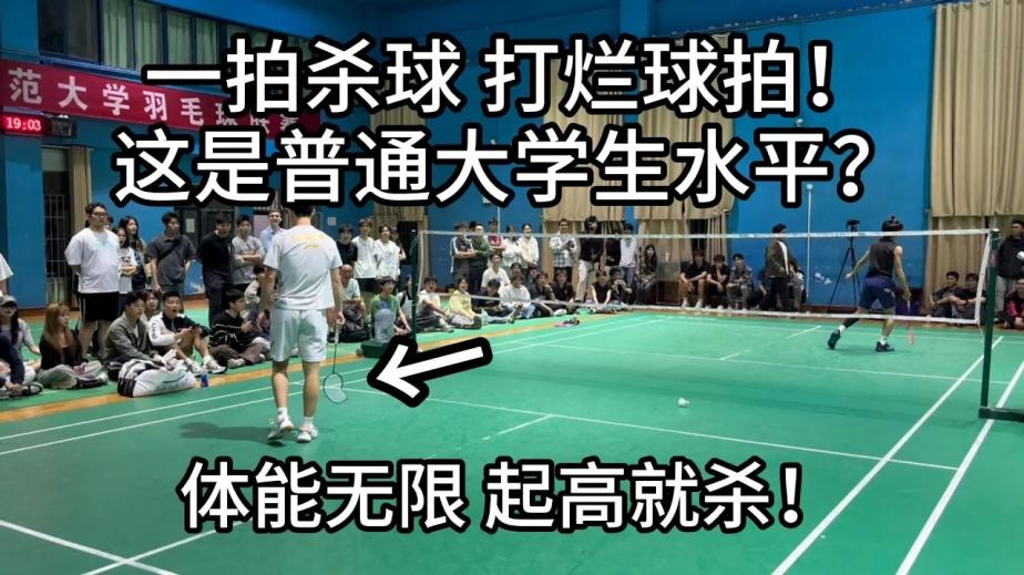 一拍杀球直接打烂球拍?体能无限,起高就杀!普通大学生的羽毛球水平这么高?